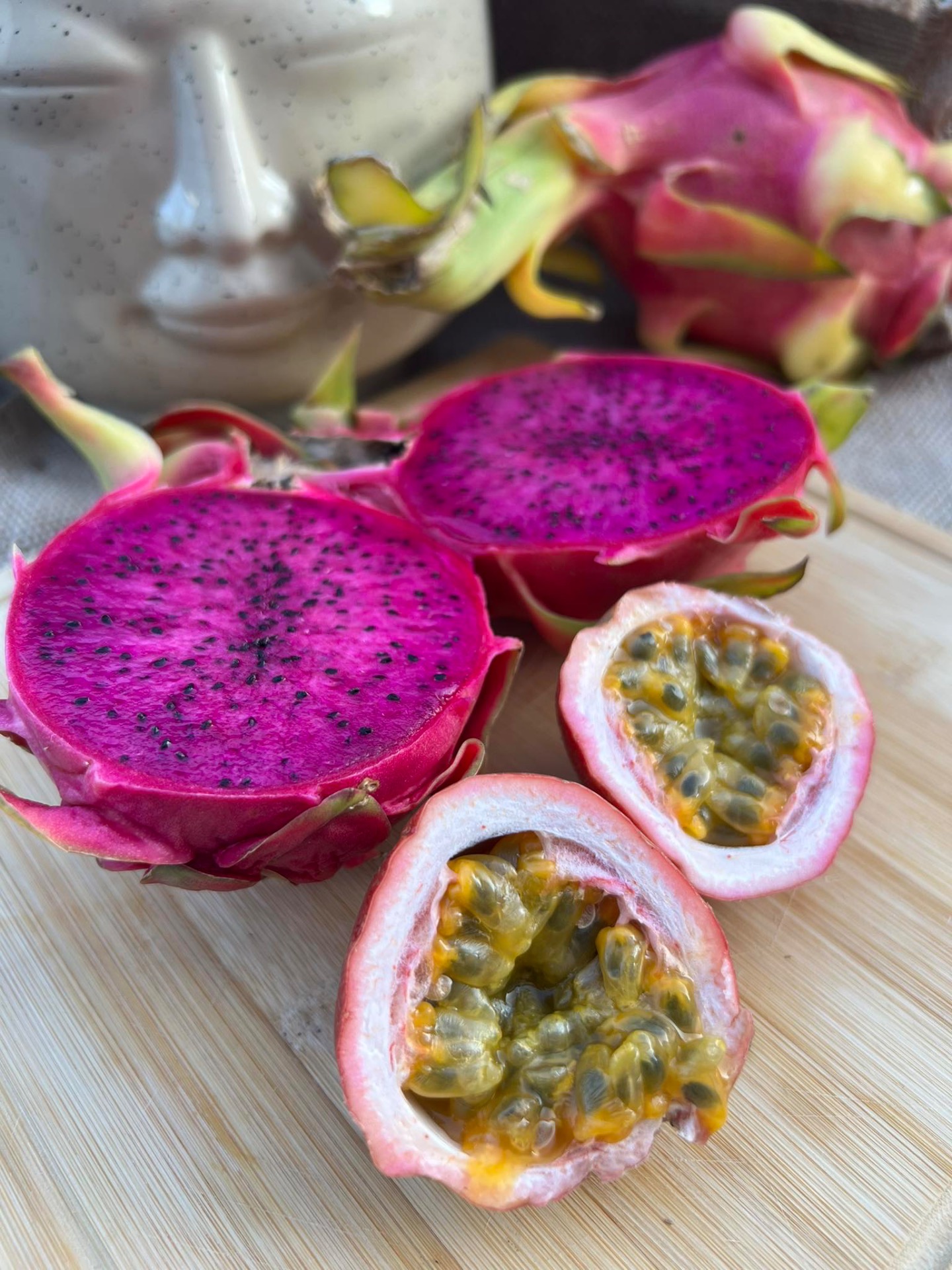 Pithaya, dračí ovoce nebo dragon fruit? Všechny názvy jsou správně! Jedná se o výborné ovoce, které má nasládlou květinovou chuť, je totiž plodem kaktusu. Nejlepší je vychlazené z ledničky a v kombinaci s marakujou. Dračí krále pro vás máme z Thajska a Vietnamu.