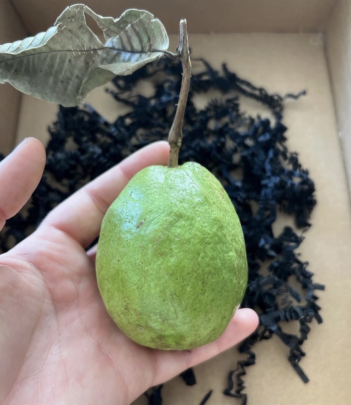 Guavu možná známe jako přísadu do džusů, ale takhle hezky pěkně čerstvou? To je jiná! Možná vám bude připomínat něco mezi jablkem a hruškou, dužina může být bílá nebo růžová a chuť jahodovo-citrónová, no nechte se překvapit. Guava k nám každý pátek přiletí z Vietnamu.